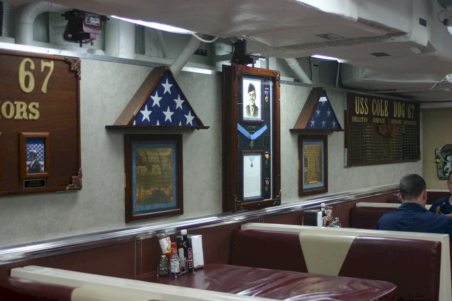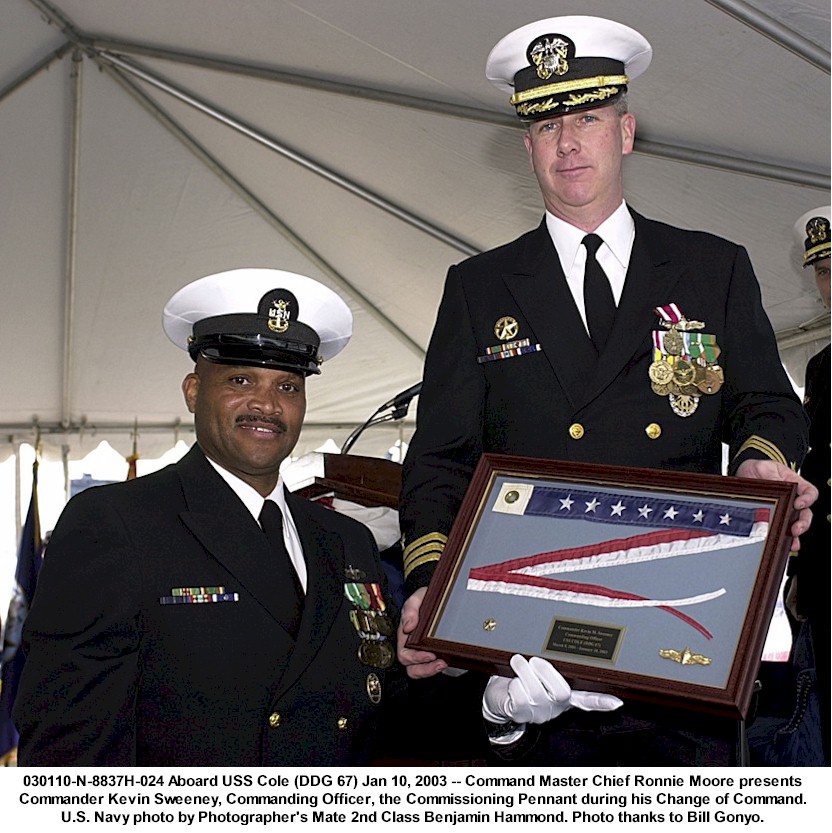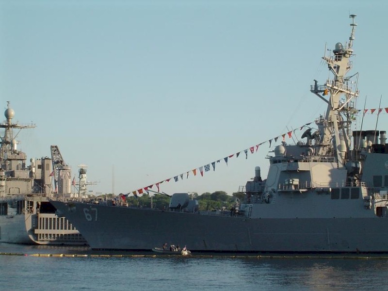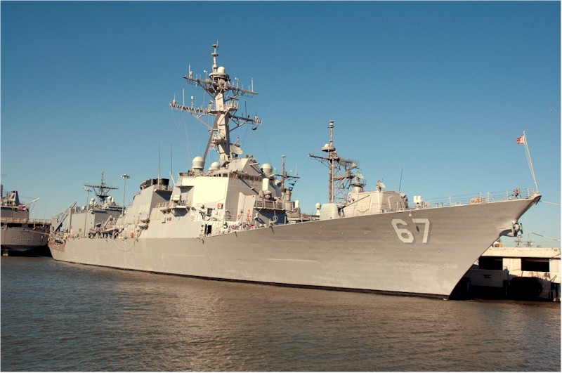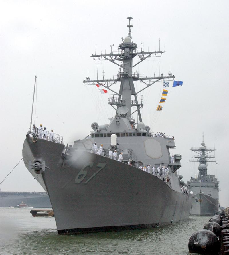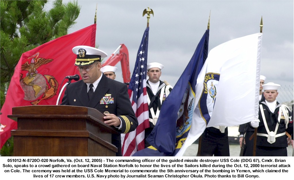 | 161k | 101012-N-5292M-816. Norfolk, October 12 2010, the guided-missile destroyer USS Cole (DDG 67) is pierside at Naval Station Norfolk during the tenth anniversary of the terrorist attack on the ship. The Norfolk-based ship was damaged by a suicide bombing while refueling in the Port of Aden in Yemen, killing 17 and wounding 39 Sailors. Cole returned to the fleet in 2002 and has deployed four times since the attack. U.S. Navy photo by Mass Communication Specialist 1st Class Julie Matyascik. | Bill Gonyo |