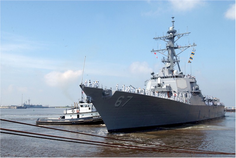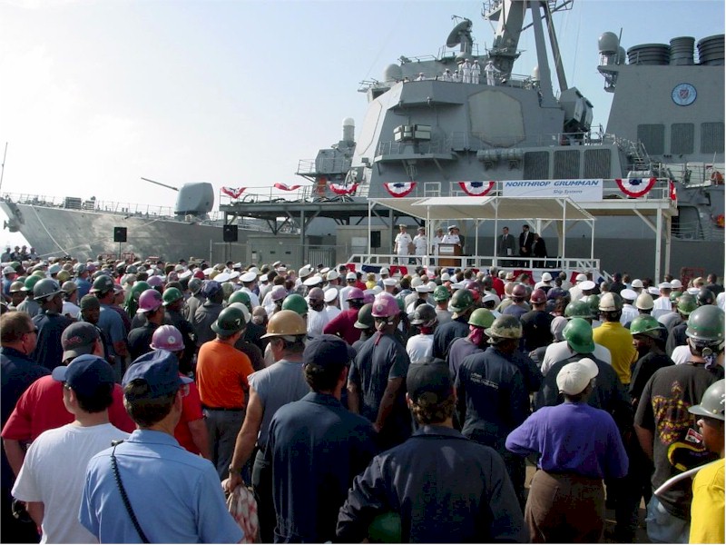 | 141k | Hundreds of workers at Northrop Grumman Ship Systems Ingalls Operation, Pascagoula, Miss. and Supervisor of Shipbuilding, Conversion and Repair Pascagoula were on hand for the departure ceremony for USS Cole (DDG 67) on April 19, 2002. Cole returned to the fleet following a 14-month repair effort in Pascagoula. Photo by Chief Journalist David Nagle. | Bill Gonyo |