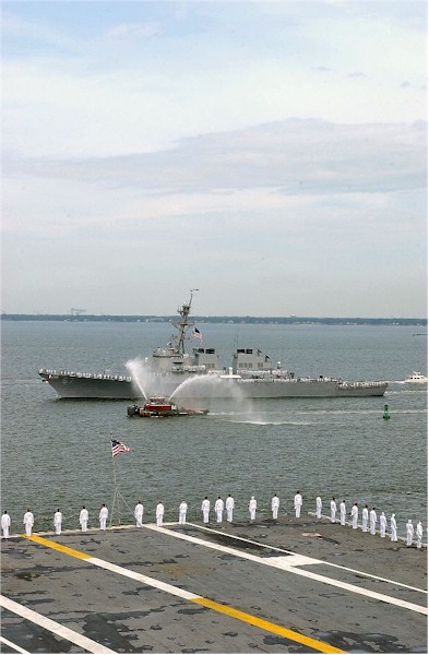 | 81k | 061206-N-1713L-015. The guided-missile destroyer USS Cole (DDG 67) pulls into port after returning to Naval Station Norfolk, Va., Dec. 6, 2006. Cole, which is part of the Iwo Jima Expeditionary Strike Group, returned after completing a six-month deployment to the U.S. Central Command 5th Fleet and U.S. European Command 6th Fleet areas of responsibility to conduct maritime security operations and assist in the evacuation of American citizens out of Lebanon. U.S. Navy photo by Mass Communication Specialist 2nd Class Lolita Lewis. | Robert M. Cieri |