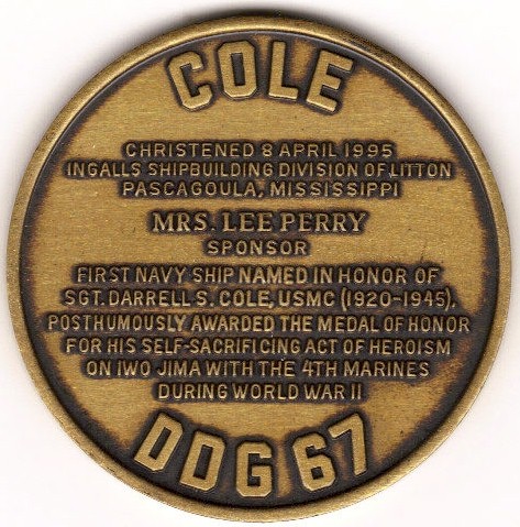 | 91k | Christening Coin for Cole DDG-67 on 8 April 1995. | Robert M. Cieri |