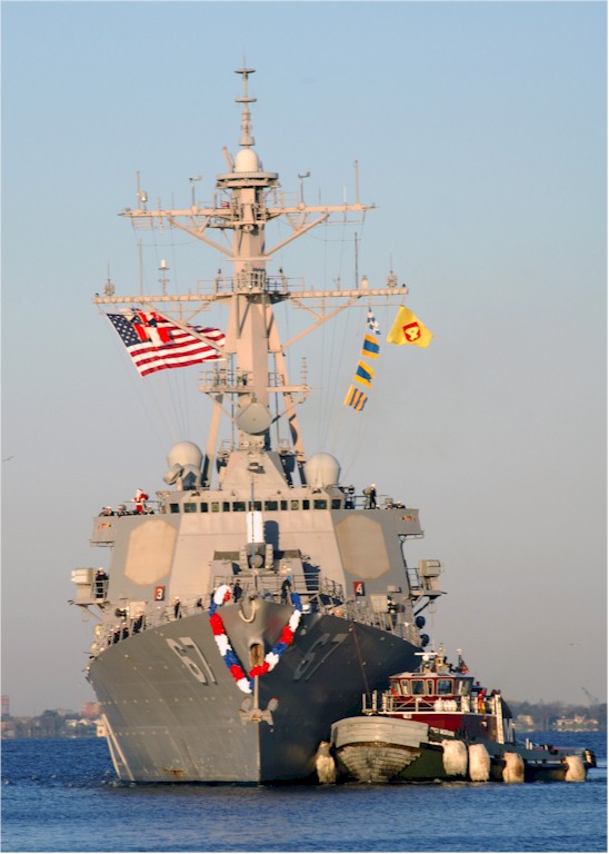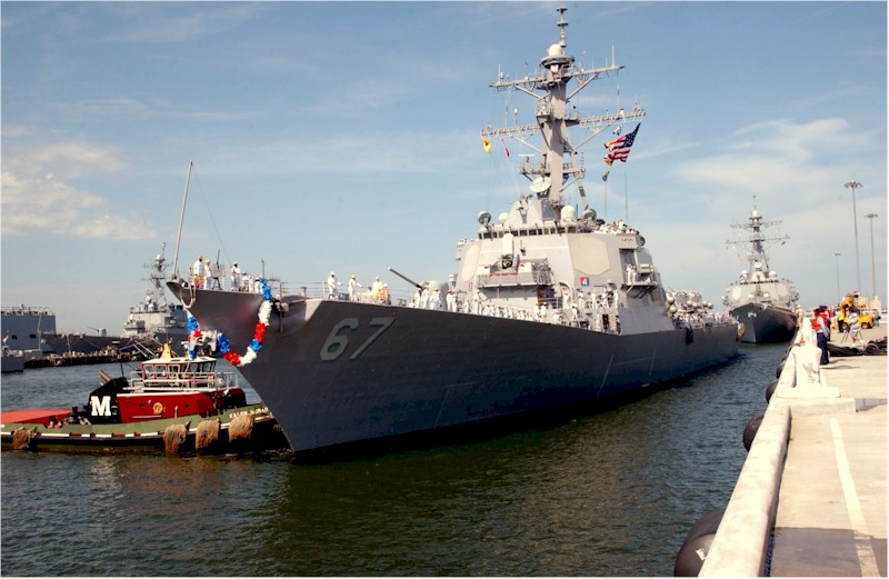 | 155k | 061206-N-2733C-014. The guided-missile destroyer USS Cole (DDG 67) pulls into port after returning to Naval Station Norfolk, Va., Dec. 6, 2006. Cole, which is part of the Iwo Jima Expeditionary Strike Group, returned after completing a six-month deployment to the U.S. Central Command 5th Fleet and U.S. European Command 6th Fleet areas of responsibility to conduct maritime security operations and assist in the evacuation of American citizens out of Lebanon. U.S. Navy photo by Mass Communication Specialist 1st Class Charmin Covington. | Robert M. Cieri |