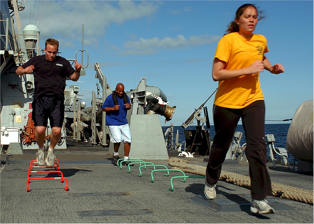 | 242k | 080614-N-5283B-025. Baltic Sea, June 14 2008, sailors participate in command physical training aboard the missile deck of the guided-missile destroyer USS Cole (DDG 67). Cole is on a scheduled deployment supporting the Baltic Operations (BALTOPS), an annual international exercise involving 13 countries. U.S. Navy photo by Mass Communication Specialist Seaman Kristin M. Baker. | Robert M. Cieri |