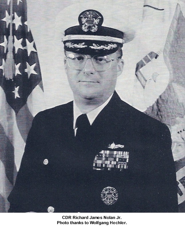 | 205k | 091012-N-1688B-016. Atlantic Ocean, October 12 2009, Cmdr. Edward Devinney, commanding officer of the guided-missile destroyer USS Cole (DDG 67), reads a memorial speech to the crew on the 9th anniversary of the Oct. 12, 2000 terrorist attack on ship that killed 17 Sailors and injured 39. Cole is participating in Exercise Joint Warrior 09-2, a United Kingdom-led, multinational exercise designed to improve interoperability between allied navies. The exercise also prepares participating naval forces for a role in combined operations during upcoming deployments. U.S. Navy photo by Mass Communication Specialist 3rd Class Matthew Bookwalter. | Bill Gonyo |