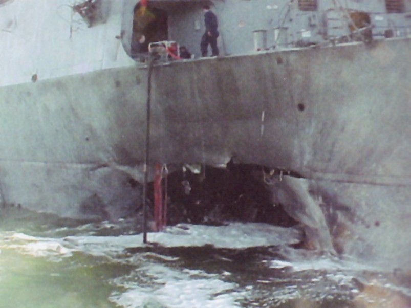 | 79k | Picture of the 35ft (10.6m) hole in the side of USS Cole (DDG-67). | Robert Hurst |