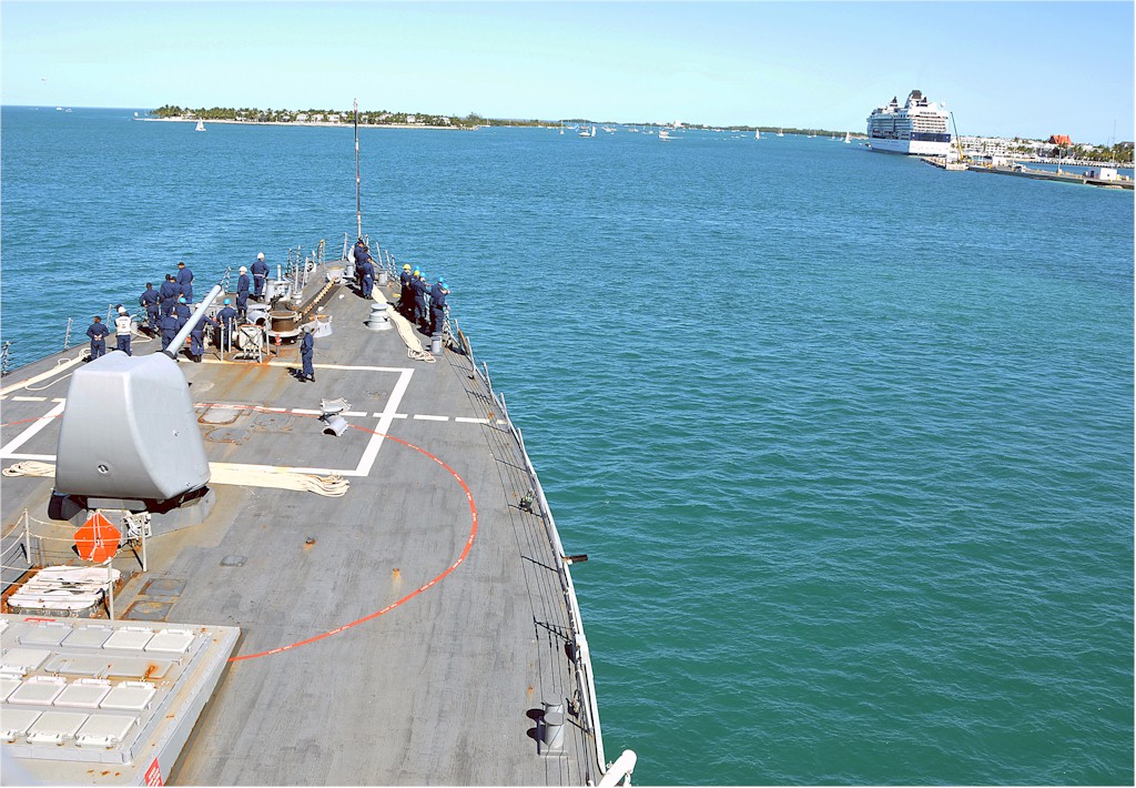 | 229k | 140119-N-YB753-070. Key West, Florida, January 19 2014, the guided-missile destroyer USS Cole (DDG 67) approaches Naval Air Station Key West's Mole Pier for a port visit. U.S. Navy photo by Mass Communication Specialist 2nd Class Brian Morales. | Robert M. Cieri |