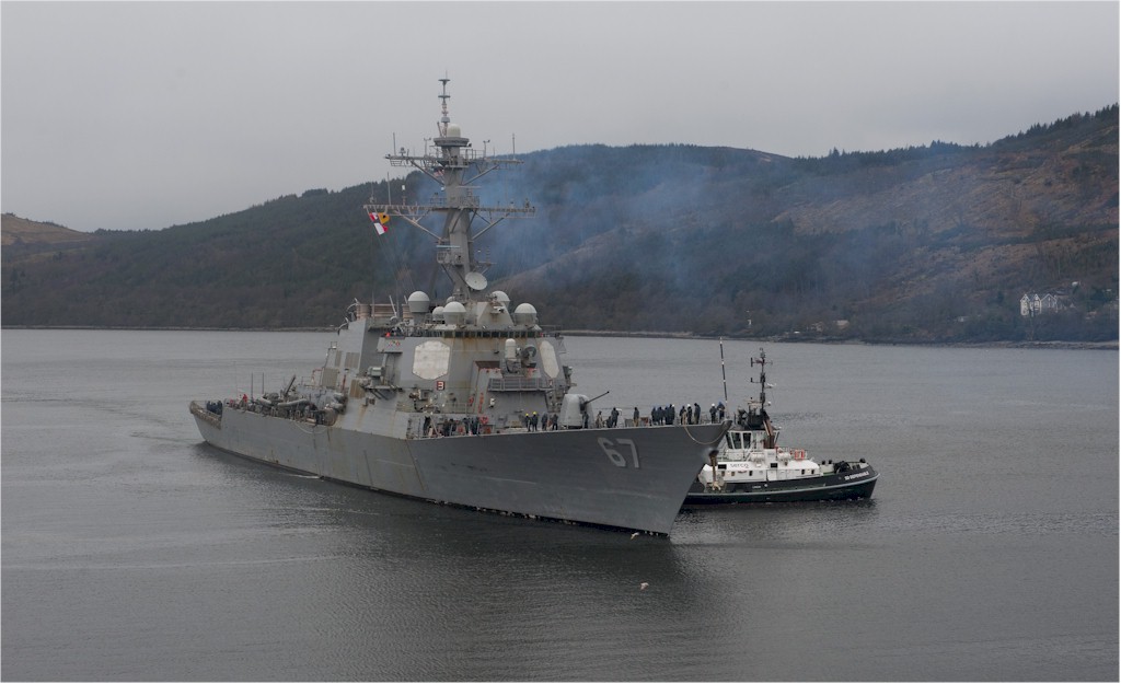 | 110k | 140328-N-WX580-078. Faslane, Scotland, March 28 2014, the guided-missile destroyer USS Cole (DDG 67) prepares to moor in Faslane, Scotland. Cole is in Scotland to participate in exercise Joint Warrior 14-1, a semi-annual, United Kingdom-led training exercise. U.S. Navy photo by Mass Communication Specialist 3rd Class Lacordrick Wilson. | Robert M. Cieri |
