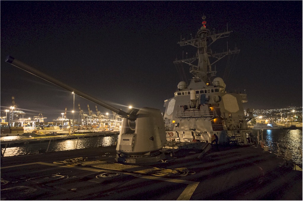 | 195k | 140918-N-IY142-159. Haifa, Israel, September 18 2014, the Arleigh Burke-class guided-missile destroyer USS Cole (DDG 67) makes preparations for getting underway after a scheduled port visit to Haifa, Israel. Cole, homeported in Norfolk, Va., is conducting naval operations in the U.S. 6th Fleet area of responsibility supporting U.S. national security interests in Europe. U.S. Navy photo by Mass Communication Specialist 2nd Class John Herman. | Ron Reeves |