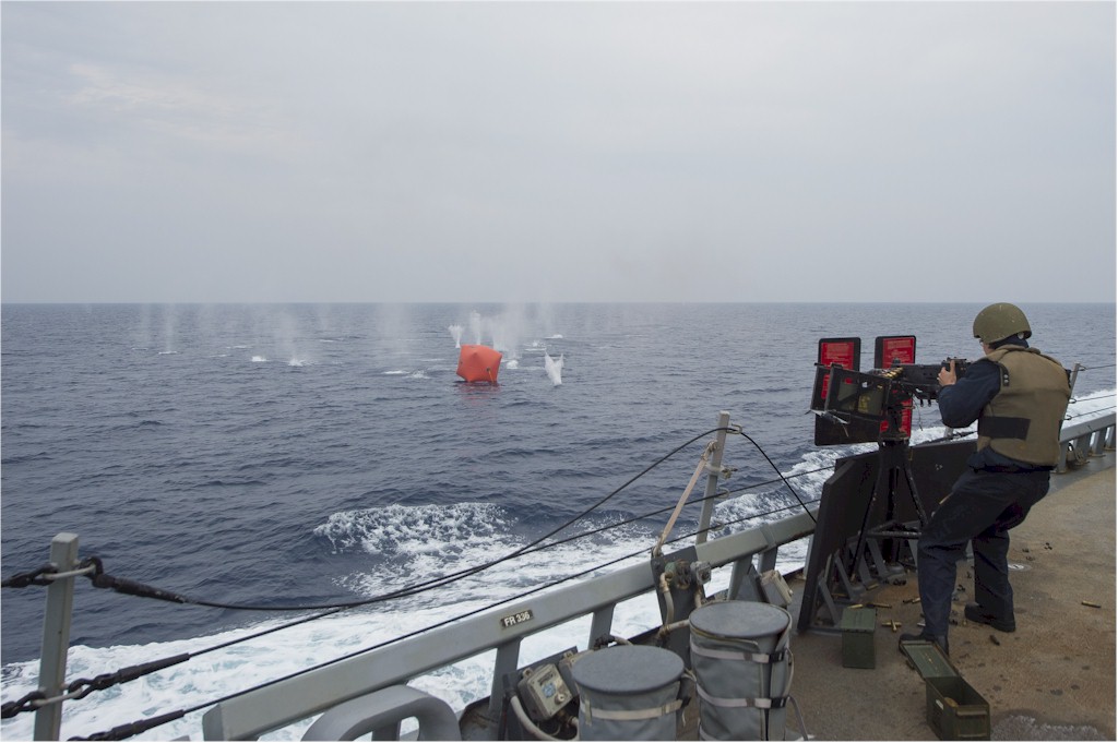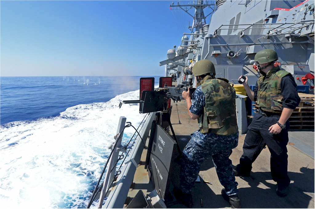 | 212k | 140920-N-IY142-044. Mediterranean Sea, September 20 2014, sailors fire a .50-caliber machine gun during a pre-action calibration fire exercise aboard the Arleigh Burke-class guided-missile destroyer USS Cole (DDG 67). Cole is conducting naval operations in the U.S. 6th Fleet area of responsibility in support of U.S. national security interests in Europe. U.S. Navy photo by Mass Communication Specialist 2nd Class John Herman. | Ron Reeves |