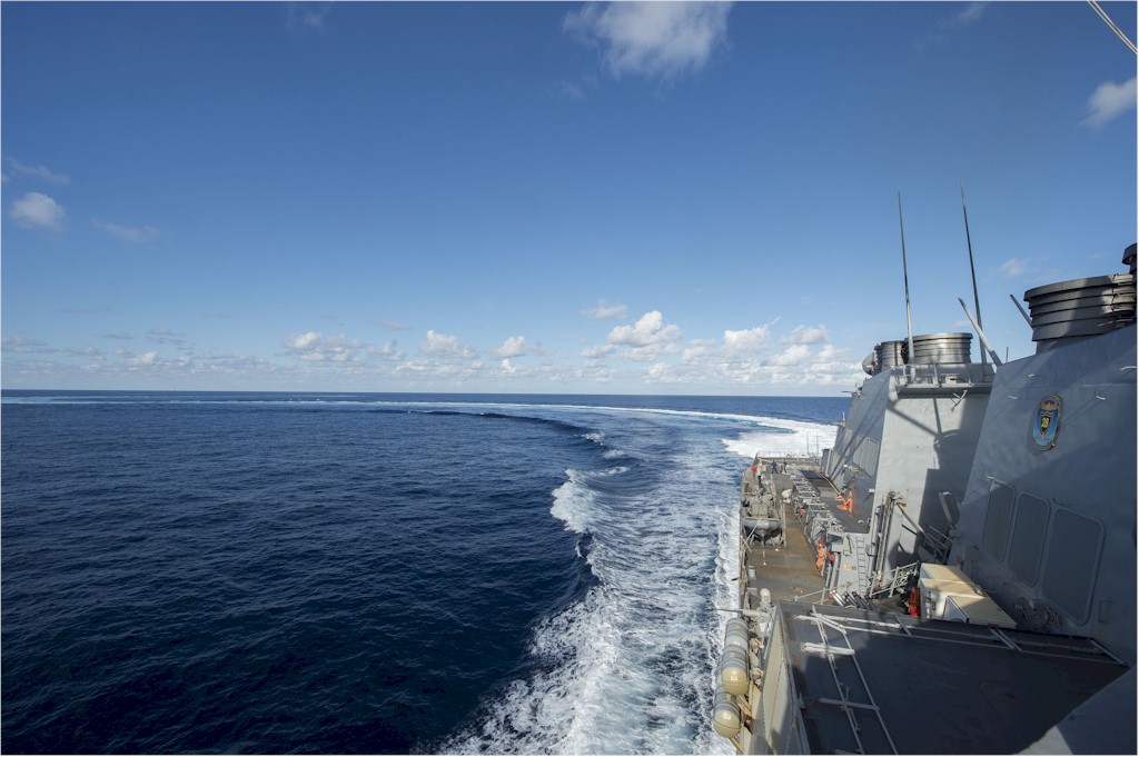 | 171k | 141217-N-JN664-096. Mediterranean Sea, December 17 2014, the guided-missile destroyer USS Donald Cook (DDG 75) makes a hard turn after completing a passenger transfer with USS Cole (DDG 67). Donald Cook is forward-deployed to Rota, Spain, and is conducting naval operations in the U.S. 6th Fleet area of responsibility in support of U.S. national security interests in Europe. U.S. Navy photo by Mass Communication Specialist 2nd Class Karolina A. Oseguera. | Ron Reeves |
