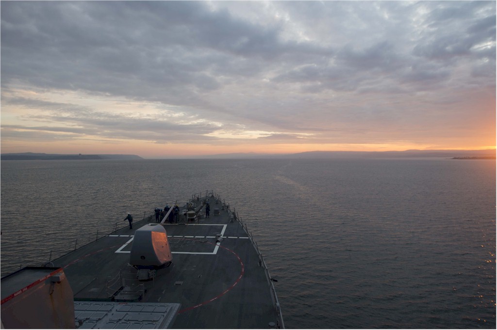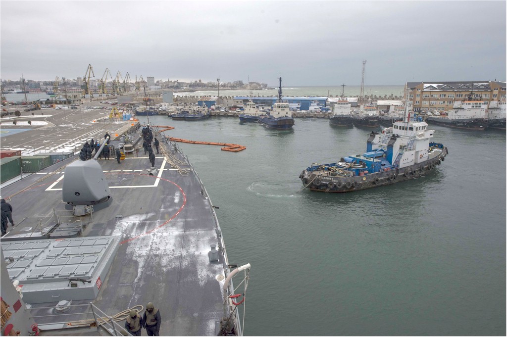 | 161k | 150212-N-TC720-052. Constanta, Romania, February 12 2015, the guided-missile destroyer USS Cole (DDG 67) prepares to depart Constanta, Romania, after completing a scheduled port visit. Cole is conducting naval operations in the U.S. 6th Fleet area of responsibility in support of U.S. national security interests in Europe. U.S. Navy photo by Mass Communication Specialist 3rd Class Mat Murch. | Ron Reeves |