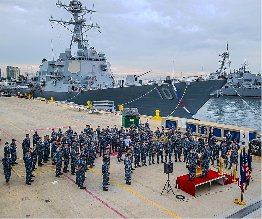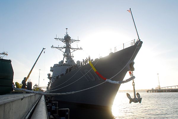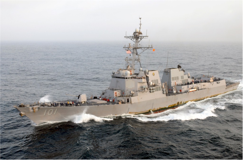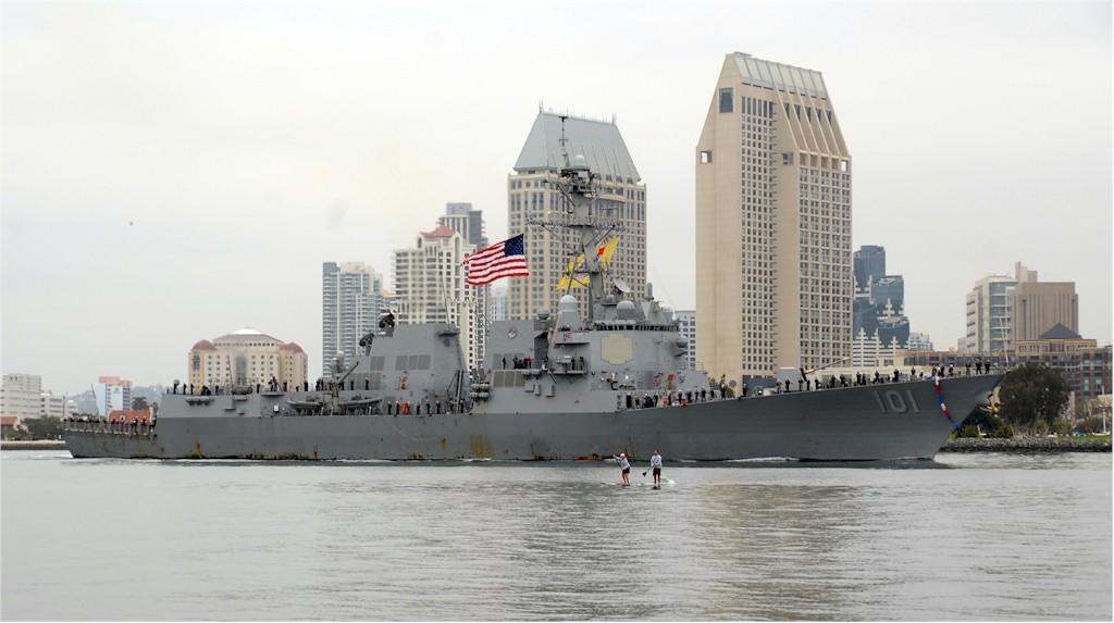 | 119k | 130205-N-DH124-020. San Diego, February 5 2013, the Arleigh Burke-class guided-missile destroyer USS Gridley (DDG 101) returns to homeport at San Diego after a six-month independent deployment to the U.S. 7th and 5th Fleet areas of responsibility. Gridley conducted eight successful Strait of Hormuz transits, escorting high value units in and out of the Arabian Gulf and conducted six high-visibility operations in the East and South China Seas to maintain U.S. maritime presence and improve regional stability. U.S. Navy photo by Mass Communication Specialist 2nd Class Rosalie Garcia. | Ron Reeves |