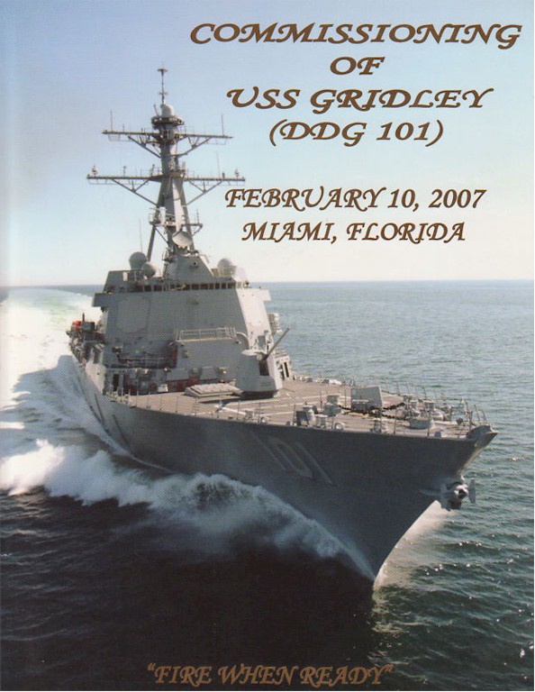 | 152k | 080606-N-1635S-002. Pacific Ocean, June 6 2008, the Arleigh Burke-class guided-missile destroyer USS Gridley (DDG 101) steams in the Pacific Ocean during a commemoration ceremony for the 66th anniversary of the battle of Midway. The Ronald Reagan Carrier Strike Group is on a routine deployment in the U.S. 7th Fleet area of responsibility. U.S. Navy photo by Mass Communication Specialist 3rd Class Joshua Scott. | Robert M. Cieri |