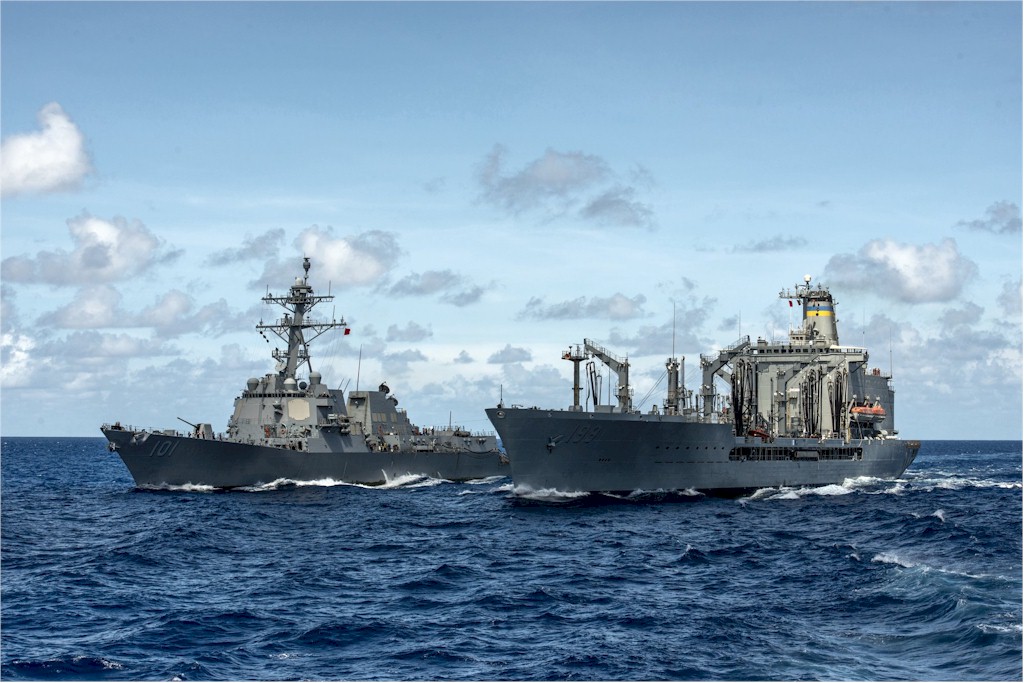 | 174k | USNS Tippecanoe (T-AO-199) conducts a replenishment-at-sea with the guided-missile destroyer USS Gridley (DDG-101). Gridley is a unit of the Carl Vinson Carrier Strike Group deployed to the U.S. 7th Fleet area of operations supporting security and stability in the Indo-Asia-Pacific region. US Navy photo # 50514-N-TP834-029 CELEBES SEA (May 14, 2015) by MC2 John Philip Wagner. | Lee Wahler |