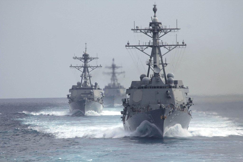 109k | USS Halsey (DDG-97), USS Michael Murphy (DDG-112) and USS Gridley (DDG-101) underway on May 23 2014. US Navy Photo. | Tommy Trampp |