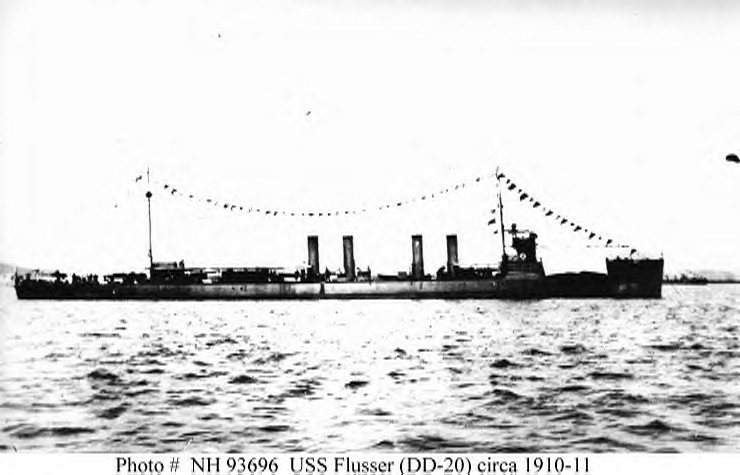 74k | Photo #: NH 98018, USS Flusser (Destroyer # 20) underway, circa the early 1910s. U.S. Naval Historical Center Photograph. | Paul Rebold |