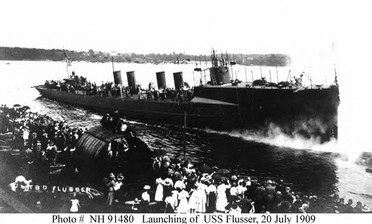 80k | Launching, 20 July 1909, at the Bath Iron Works, Bath, Maine. Courtesy of Commander Donald J. Robinson, USN(Retired), 1980. U.S. Naval Historical Center Photograph. | Fred Weiss |