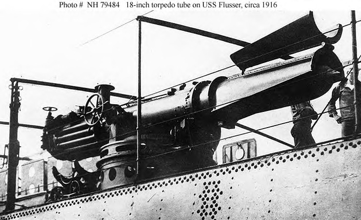 107k | USS Flusser (DD-20) Halftoned photograph of one of her 18" torpedo tubes, circa 1916. Copied from the book United States Navy Illustrated, published in New York, 1917. U.S. Naval Historical Center Photograph. | Fred Weiss |