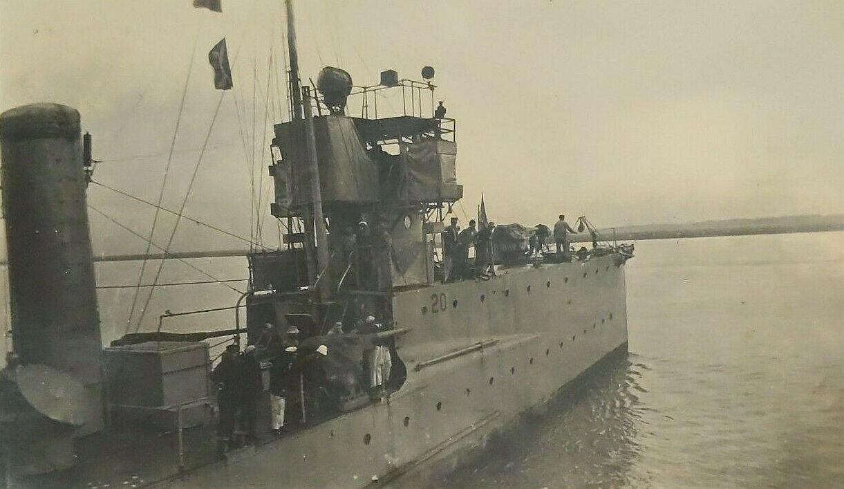 98k | USS Flusser (DD-20) in the Cooper River, Charleston, SC, January 1919. Note her hull number below the pilothouse. | Dave Wright |