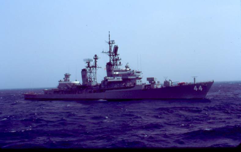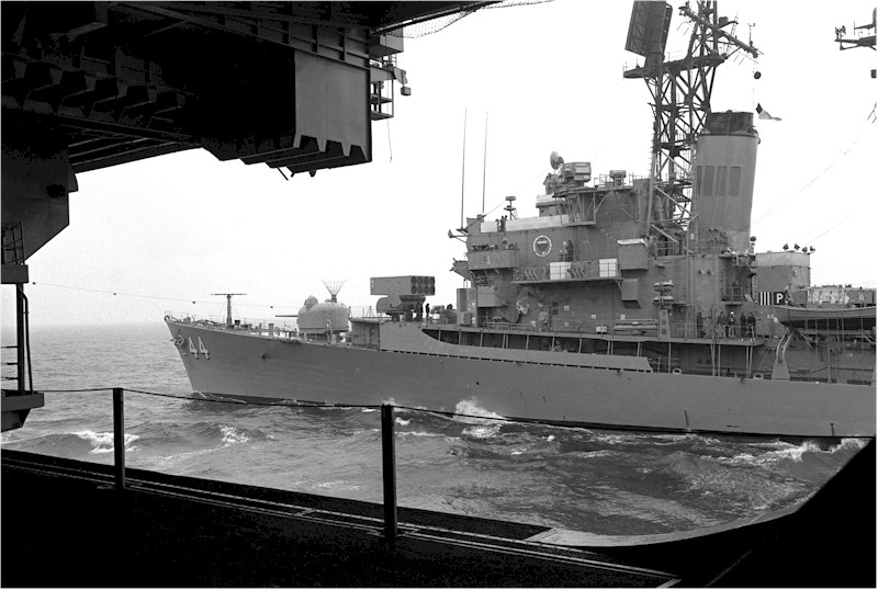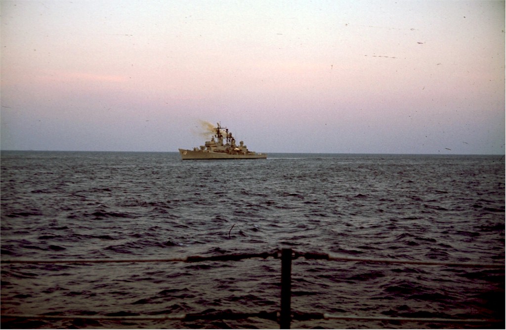 | 191k | DN-SC-84-06179. Atlantic Ocean, January 10 1984, a port quarter view of the guided-missile destroyer USS William V. Pratt (DDG 44) taken from the aircraft carrier USS America (CV 66). U.S. Navy photo by: PH1 Dave MacLean. | Robert M. Cieri |