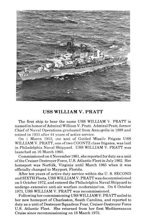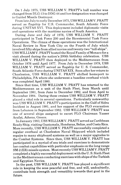 | 85k | US Navy Photograph #USN-7462-9-80, September 15 1980 of the USS William V. Pratt DDG-44, location unknown. Photographer was PH1 J. C. Vasquez, USN. | Robert M. Cieri |