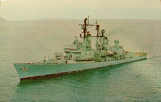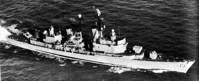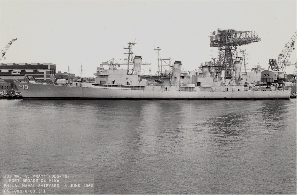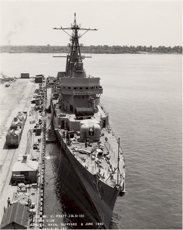 | 130k | USS William V. Pratt (DLG-13) Underway in the Mediterranean Sea, 27 May 1969. Photographed by Ph2 G.G. Cottrill, of USS John F. Kennedy (CVA-67). Official U.S. Navy Photograph, from the collections of the Naval Historical Center. | Fred Weiss |