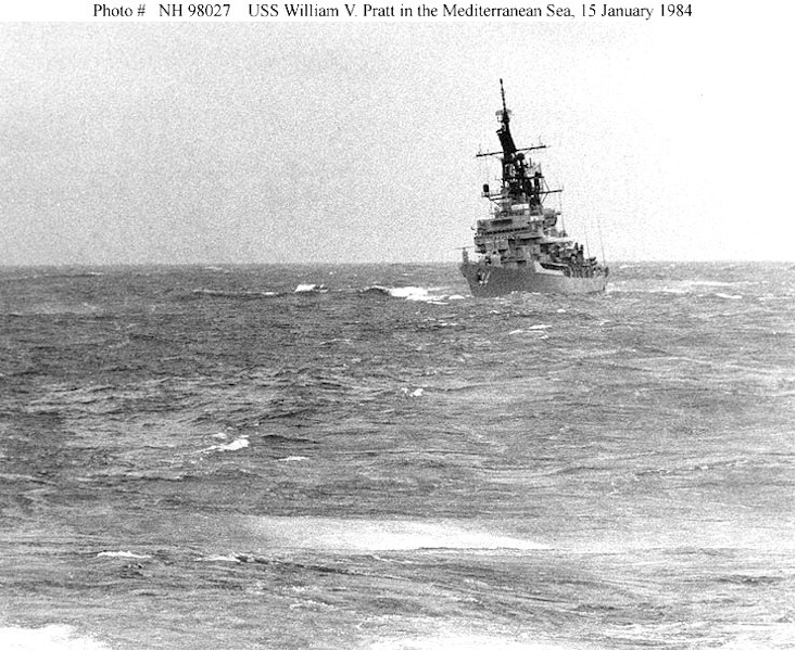 | 155k | USS William V. Pratt (DDG-44) Steaming in the Mediterranean Sea, 15 January 1984. Photographed by Ph1(AC) David C. MacLean. Official U.S. Navy Photograph, from the collections of the Naval Historical Center. | Fred Weiss |