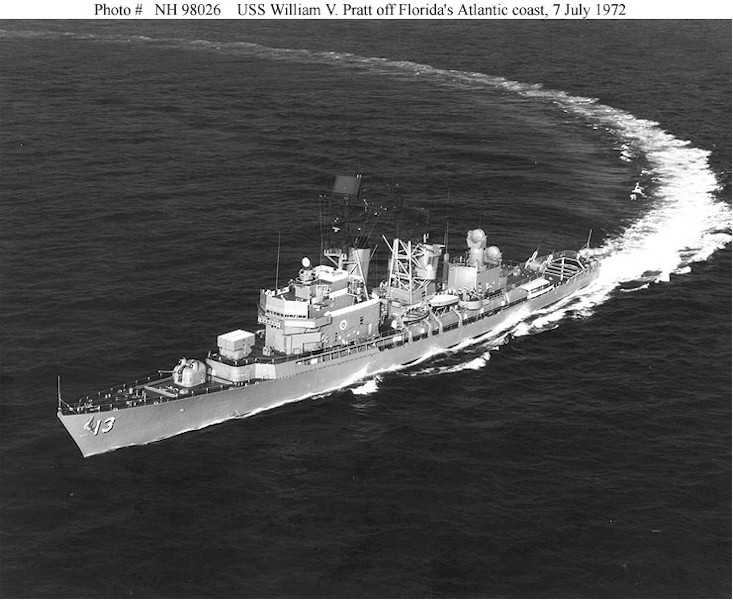 | 114k | USS William V. Pratt (DLG-13) Underway in the Atlantic Ocean, off the coast of Florida, 7 July 1972. Photographed by Ph3 Thomas E. Faught. Official U.S. Navy Photograph, from the collections of the Naval Historical Center. | Fred Weiss |