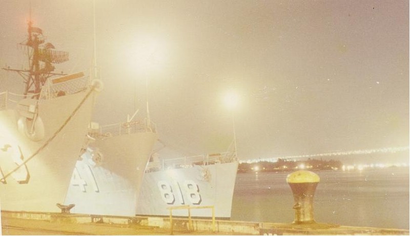 | 55k | Christmas Eve 1967 in Pearl Harbor by ships photographer FTG3 Larry Struck of the New. USS William V. Pratt (DLG-13), USS DuPont (DD-941) and USS New (DD-818). | Rick Palmer |