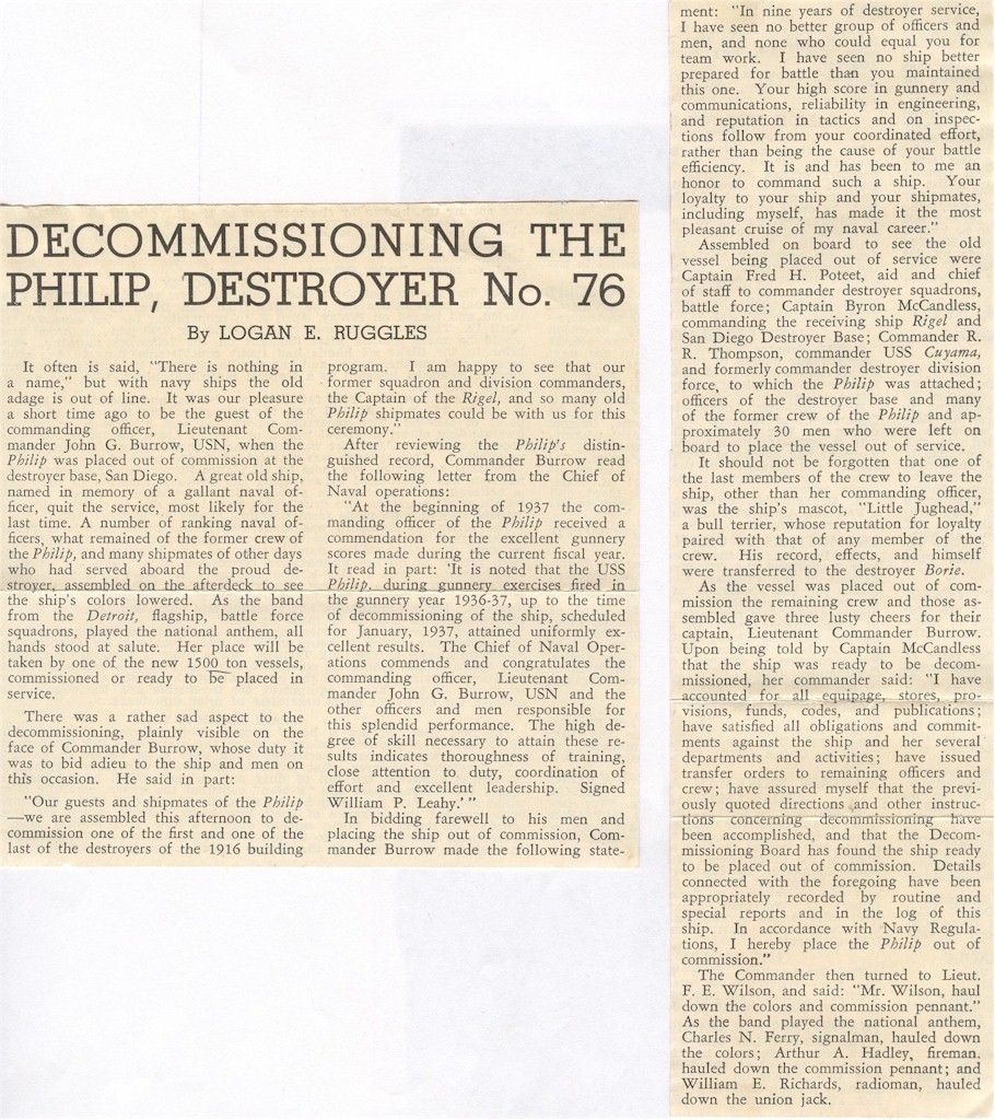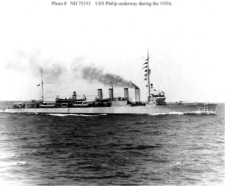 100k | USS Philip (DD-76) In port, during the 1930s. U.S. Naval Historical Center Photograph. | Fred Weiss |