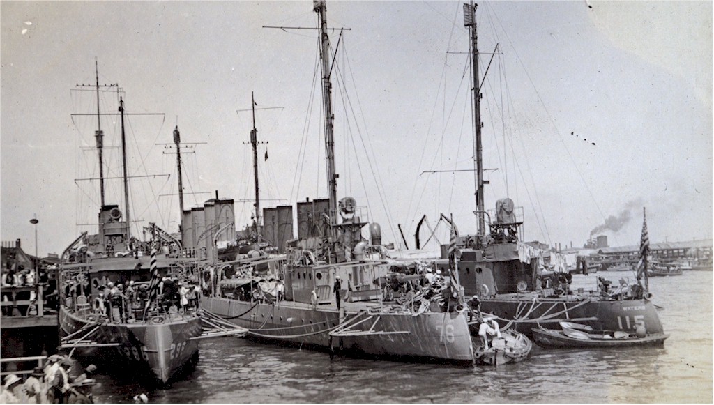 166k | (L-R) USS Chauncey (DD-296), USS Philip (DD-76) and USS Waters (DD-115) at San Pedro circa December 1919. | Alan Leigh Armstrong |