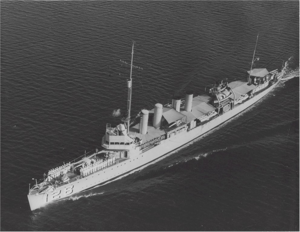 (left to right, in the right diagonal row): Stansbury (DD-180); MacKenzie (DD-175); Renshaw (DD-176); Howard (DD-179); Gillis (DD-260); Tingey (DD-272); McLanahan (DD-264); Swasey (DD-273); Morris (DD-271); Bailey (DD-269); Tattnall (DD-125); Breese (DD-122); Radford (DD-120); Aaron Ward (DD-132) -- probably; Ramsey (DD-124); Montgomery (DD-121); and Lea (DD-118).
