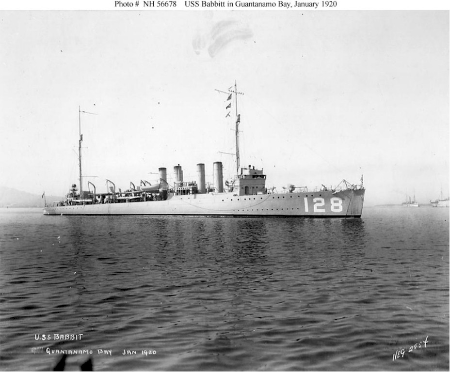 122k | USS Babbitt (Destroyer # 128), At anchor in Guantanamo Bay, Cuba in January 1920. U.S. Naval History and Heritage Command Photograph. Photo #: NH 56678. | Robert Hurst |