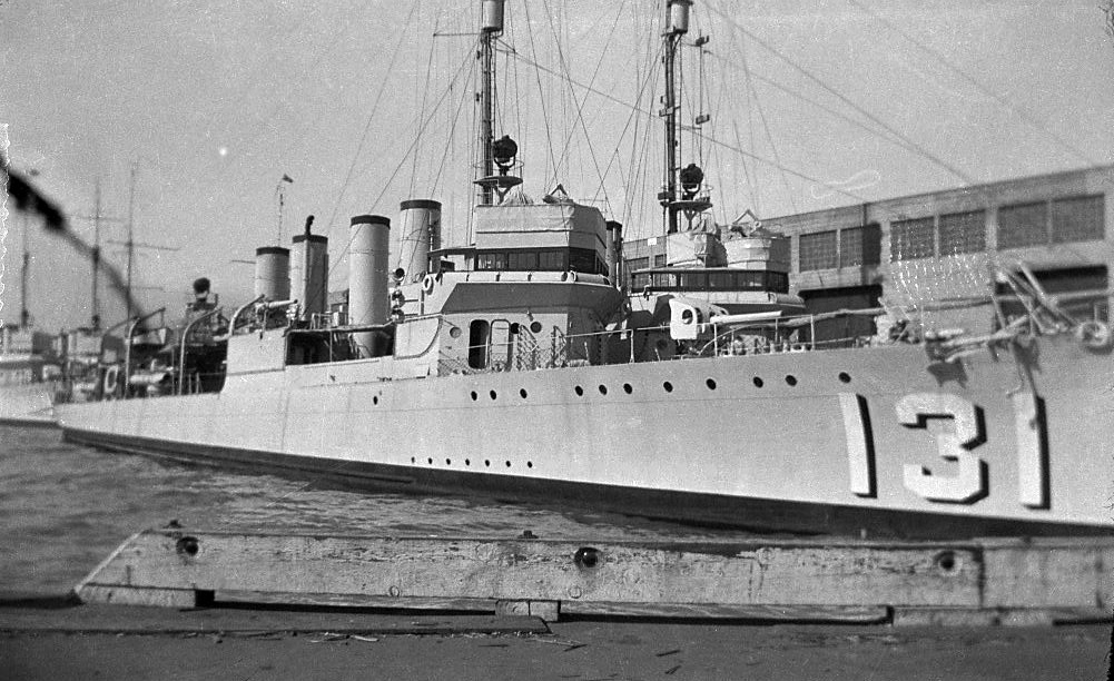 162k | USS Arron Ward (DD 132) and USS Hale (DD 133) at the Port of Stockton, California circa 1939. | Darryl Baker |
