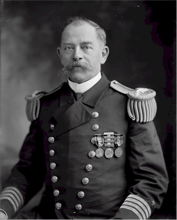 | 87k | Aaron Ward was born on 10 October 1851 in Philadelphia, Pa. Following graduation from the United States Naval Academy in 1871, he was ordered to California on the Pacific station. He next served in Brooklyn in the West Indies from 1873 to 1874, before reporting to Franklin on the European station. Ward served a tour of duty at the Naval Academy from 1876 to 1879. Next he served with the Constitution training squadron in 1879 through 1882. Ward was occupied with various professional duties at the torpedo station in Newport, R.I., and the New York Navy Yard through 1885. From 1885 to 1888 he was stationed in Hartford and Monongehela on the Pacific station. Between 1889 and 1894, Ward served as naval attaché in Paris, Berlin, and St. Petersburg. He sailed with New York in the West Indies and Brazil until 1894, and in San Francisco in the Mediterranean through 1896. During the Spanish-American War, Ward commanded Wasp. Commended for gallantry, he was advanced to lieutenant commander for conspicuous service at the Battle of Santiago. He then commanded Panther for a year in the West Indies, followed by service as chief of staff to the Asiatic station commander. From 1901 to 1908, Ward commanded Yorktown, Don Juan de Austria, and Pennsylvania successively. He served for one year as supervisor of the harbor at New York before becoming an aide to the Secretary of the Navy in 1909. In 1910 Ward was promoted to rear admiral. In 1911 he became second in command of the Atlantic Fleet. Rear Admiral Ward retired on 10 October 1913. He died on 5 July 1918, and is buried in Greenwood Cemetery, Brooklyn, N.Y. Photo courtesy of the Library of Congress. | Tony Cowart/Robert M. Cieri/Bill Gonyo |