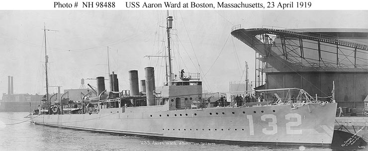 51k | Photo #: NH 98488, USS Aaron Ward (Destroyer # 132) at Boston, Massachusetts, 23 April 1919. Panoramic photograph by J. Crosby, Naval Photographer, 11 Portland St., Boston, Mass. Courtesy of the Naval Historical Foundation. Crosby Collection. U.S. Naval Historical Center Photograph. | Paul Rebold |