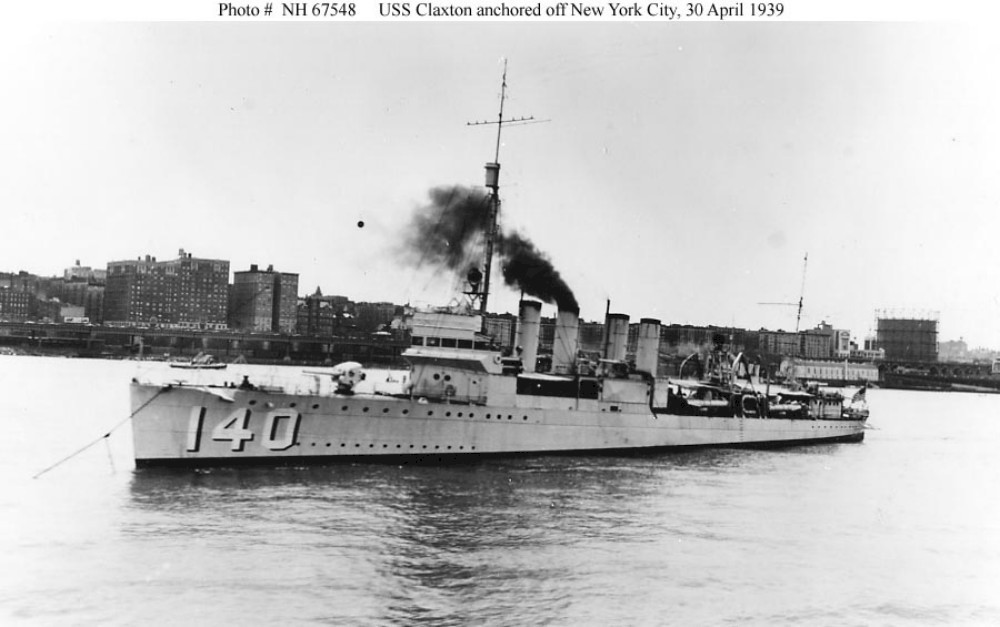 | 101k | USS Claxton (DD-140), Anchored off New York City, 30 April 1939. Courtesy of Donald M. McPherson, 1969. U.S. Naval History and Heritage Command Photograph. Photo #: NH 67548. | Robert Hurst |
