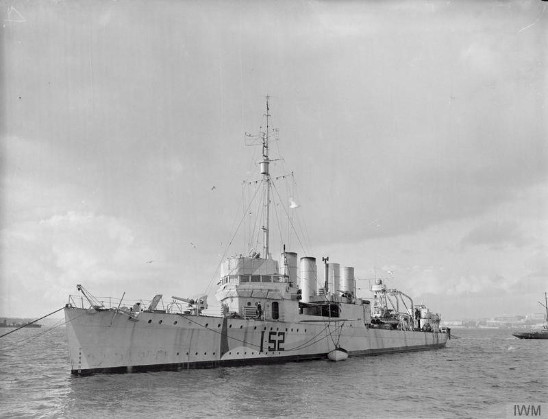| 57k | Starboard side view of the HMS Salisbury (I 52) moored, on February 19, 1941. Source: Imperial War Museum Admiralty Official Collection, Photo No. © IWM (A 3161). | Mike Green |