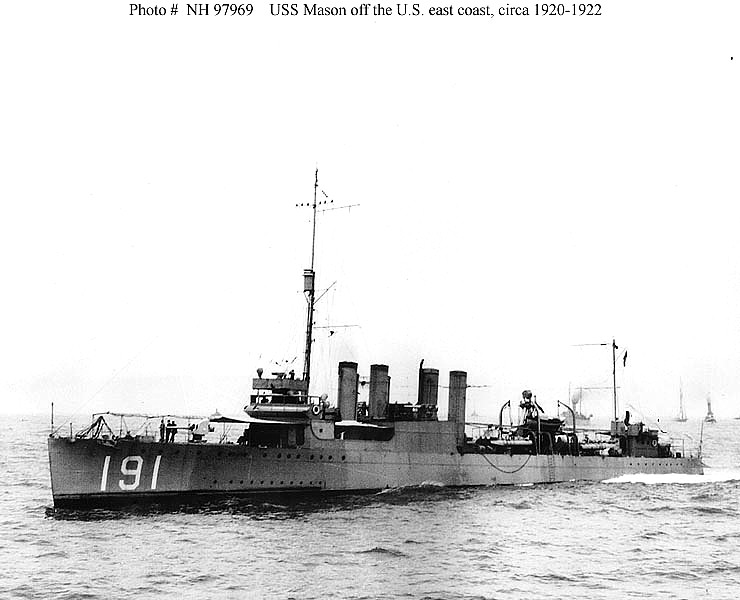 | 75k | USS Mason (DD-191) Off the U.S. east coast, circa 1920-1922. Official U.S. Navy Photograph, from the collections of the Naval Historical Center. | Ronald "Chalky" White, Royal Navy |
