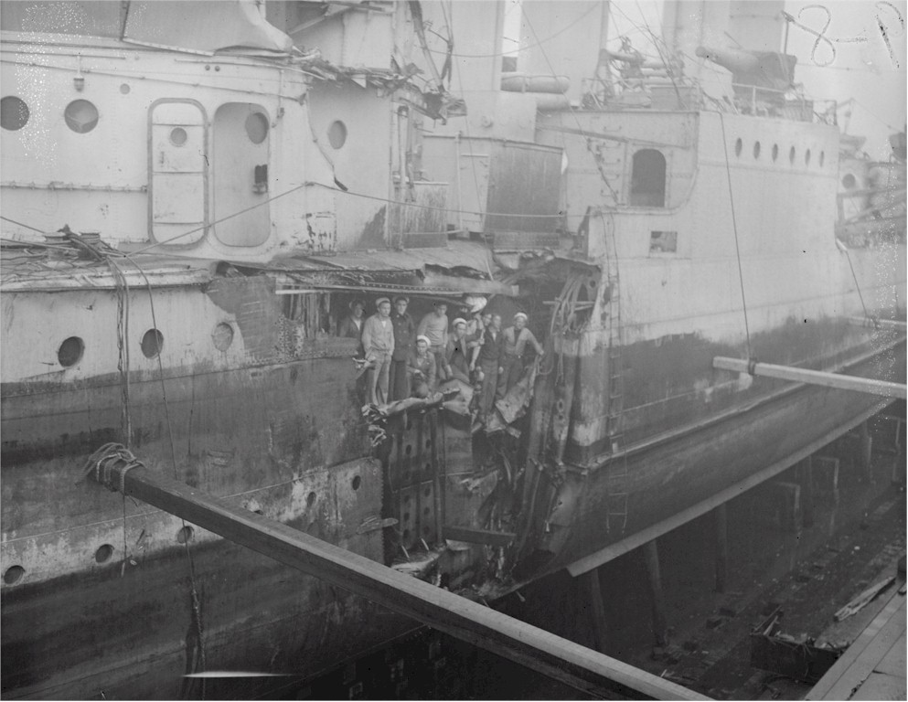 149k | USCG CG-17 Herndon in dry-dock at Charlestown Navy Yard after the 15 January 1932 collision with collier SS LEMUEL BURROWS in thick fog off Montauk Point, L.I. Leslie Jones collection, Boston Public Library. | Rick E. Davis/Ed Zajkowski |