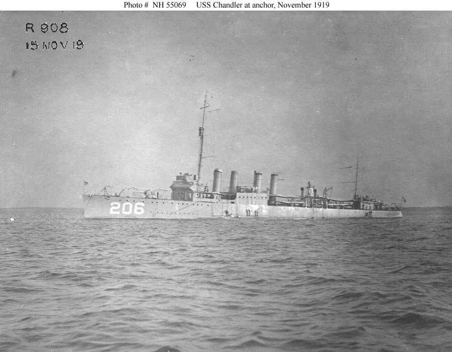 107k | USS Chandler (Destroyer # 206), At anchor, November 1919. Naval History and Heritage Command photo NH 55069. | Robert Hurst |