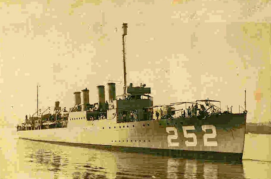 87k | USS Colhoun (DD-85) escorting a convoy in 1918. |