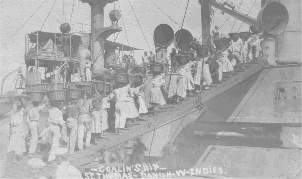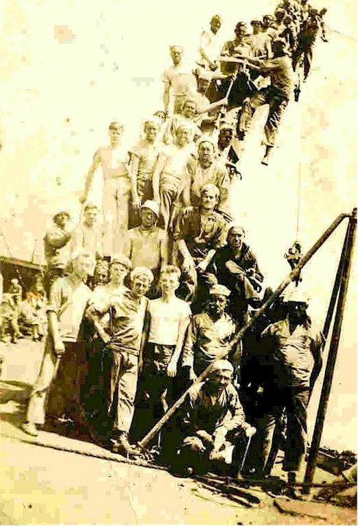 135k | The "Black Gang" after coaling in St. Thomas. Now you can see why they call them "Snipes." |