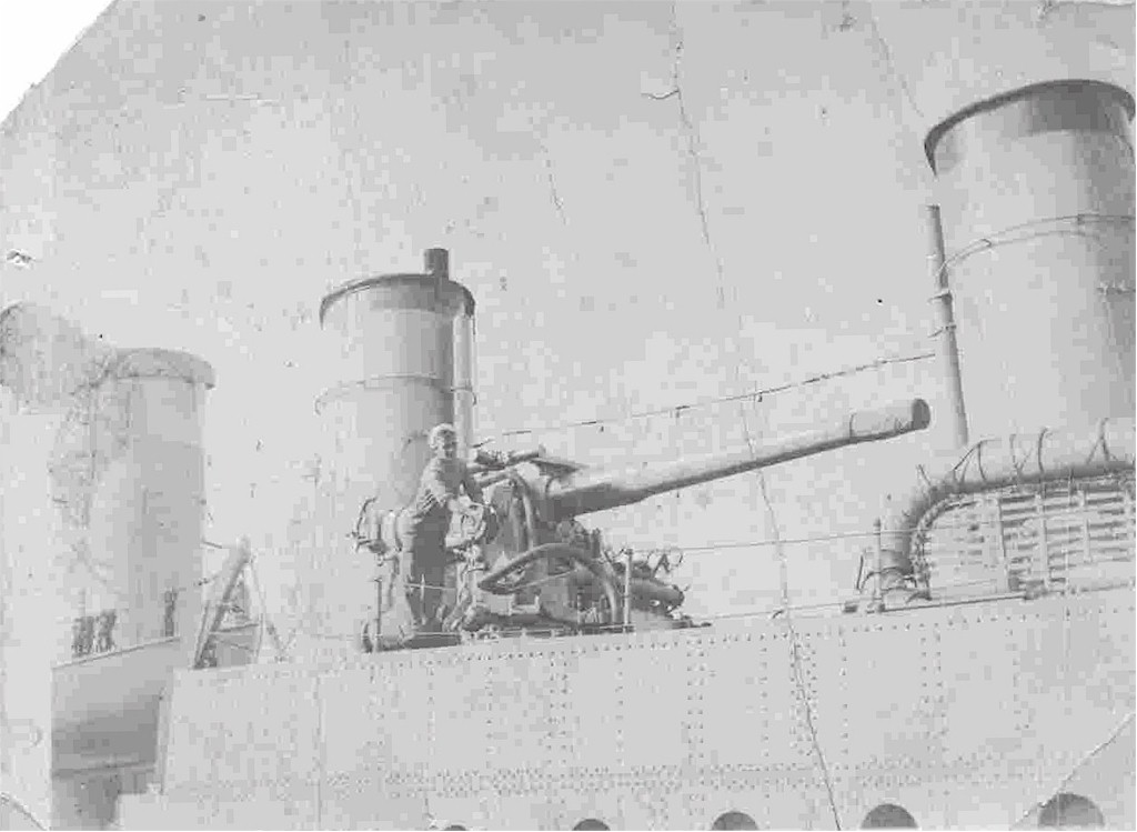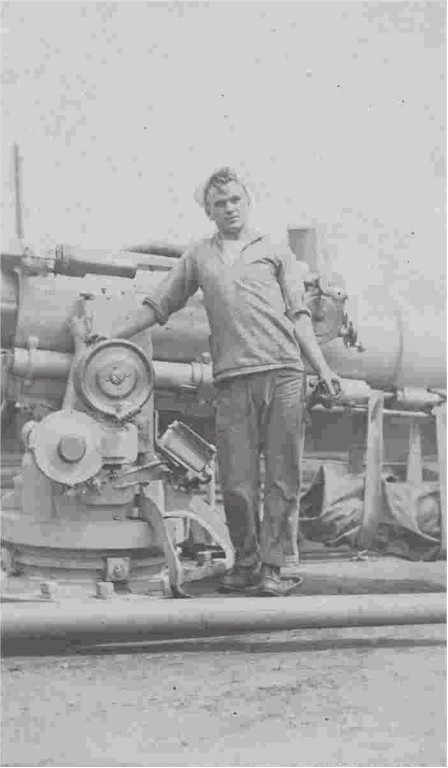 59k | Bob next to his gun on the USS Charleston (C-22/CA-19). |
