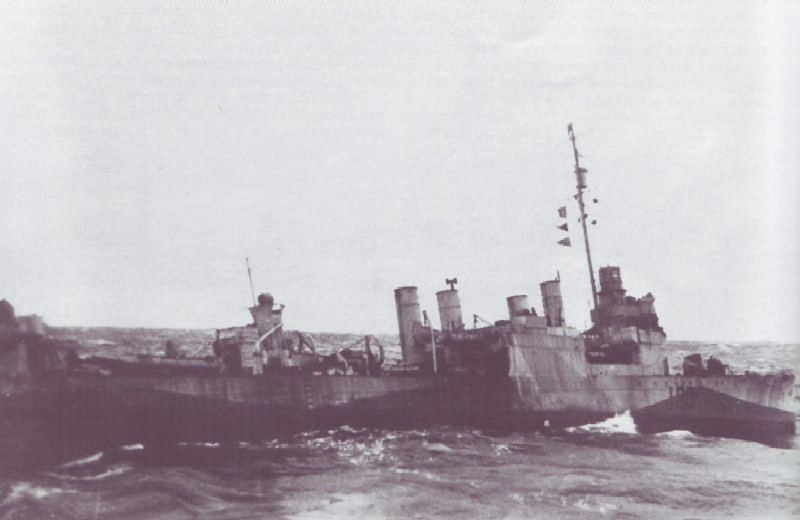 | Commissioned at Halifax on 23 October 1940, HMS Sherwood sailed for Britain on 1 November being delayed both by a search for survivors from the armed merchant cruiser HMS Jervis Bay and having to return with defects to St Johns, NF, where she arrived on 7 November. Sailing again on 12 November, she arrived at Portsmouth to refit on 26 November, one of the few ships not to be taken in hand at Devonport. Damaged in an air raid by a near miss on 11 March 1941, she transferred to Devonport to complete, this being done by 8 April, and then joined 12th Escort Group based at Iceland. From that base, HMS Sherwood escorted Atlantic convoys in their mid passage, took part in the the search for the battleship Bismarck, and, with HMCS St Clair, supported HMS Tartar after the sinking of HMS Mashona at the end of that search. Allocated to NEF in July 1941, HMS Sherwood instead had a refit on the Clyde for two months, joining 2nd Escort Group at Londonderry on completion. After escorting two convoys, HMS Sherwood transferred to 22nd Escort Group in November 1941 until sustaining weather damage on 27 January 1942. Repaired after a brief period, HMS Sherwood escorted the fleet carrier HMS Formidable and then the fleet carrier HMS Illustrious during sea trials in February and March 1942, after which she needed further work including retubing her boilers, work which lasted at Liverpool until 25 August 1942. Completing repair and the subsequent work up, HMS Sherwood was temporarily employed as an Air Target Ship in the Cromarty area until mid-October 1942, when she went to St Johns, NF, to join MOEF. In March 1943 she became part of C2 Group, and made a return passage from the UK to North Africa, on completion of which she laid up at Londonderry, defective. After being surveyed in April 1943, it was decided that HMS Sherwood was beyond economic repair, and she was transferred to Chatham and stripped of usable parts for her sisters. On 28 September 1943, in tow of the tug Sea Giant, she left Chatham and joined convoy FN1640 in tow for the Humber. On 30 September she was formally removed from the effective list, being beached on 3 October 1943 in position 58.37.07N 00.05.05W in the Humber Approaches and used as a target for rocket equipped RAF Beaufighters. The wreck was, eventually, dispersed under the RN wreck dispersal programme post-war. (Foreign service history thanks to Robert Hurst) |