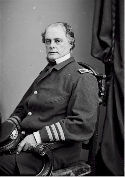 | 60k | John Rodgers, the first born of Commodore John Rodgers and Minerva (Denison) Rodgers, was reared in his father’s hometown of Havre de Grace, Maryland in August of 1812 while the senior Rodgers commanded the frigate President scouring the Atlantic for British prizes. His incredible naval career ended 70 years later following 54 years of naval service. Rodgers was appointed midshipman in 1828 and was assigned to the frigate Constellation on duty with the Mediterranean Squadron. After a year studying mathematics and natural philosophy at the University of Virginia, and a short tour with the Coast Survey, Rodgers was assigned to the brigantine Dolphin with the Brazil Squadron. During the Seminole War between 1839 and 1842, Rodgers was intensely active, commanding the schooner Wave and the brig Jefferson. He was next assigned to duties as First Lieutenant of the 10-gun brig Boxer, Lieutenant Oscar Bullus commanding, sailing primarily to the West Indies and Florida Coast. Following duty in the city of Pittsburg constructing the steam-frigate Allegheny, Rodgers was ordered to the frigate United States and the sloop-of-war Marion off the African coast and subsequently the Mediterranean. Three years with the Coast Survey were followed by command of the screw-steamer John Hancock and second-in-command of the North Pacific Ocean and China Seas Surveying Expedition led by Cadwalader Ringgold. Rodgers relieved Ringgold of command of the Expedition in 1854 shifting his command to the sloop-of-war Vincennes. On assignment in Washington, Rodgers met and married Ann Elizabeth Hodge in 1857. Their first son, William Ledyard Rodgers, “Little Willie” to the family, later a Vice Admiral, was born while Rodgers commanded the side-wheel gunboat Water Witch with the Home Squadron. Following the outbreak of Civil War, Rodgers was ordered to supervise the creation of a river gunboat squadron with which to control the Mississippi River, an assignment that he accomplished with remarkable success although the laurels would be garnered by his successor Andrew Foote. He took part in DuPont’s victorious attack on Port Royal, and commanded the converted merchant steamer Flag on the South Atlantic Blockade before being assigned command of the armored gunboat Galena on the James River where he led a successful attack on Drewry’s Bluff in support of General McClellan’s Peninsula Campaign. Rodgers returned to the blockade as commander of the monitor Weehawken in which he engaged and captured the Confederate ironclad Atlanta, for which he was promoted to Commodore. For much of the remainder of the war Rodgers commanded the new monitor Dictator whose mechanical problems kept him out of mainstream action. The war ending, Rodgers was assigned command of a Special Service Squadron, the fast side-wheeler Vanderbilt as flagship, with which he sailed to San Francisco to serve as a reserve force for protection of the West Coast. In 1869, while commanding the Boston Navy Yard, he was promoted to Rear Admiral and ordered to command the Asiatic Station, the screw-frigate Colorado as flagship. In 1871 he successfully attacked Korean forts in retaliation for unprovoked attacks on his forces while attempting to negotiate a treaty to protect shipwrecked mariners. Returning to Washington as President of the Examining and Retirement Board he soon recrossed the country with his family to assume command of the Mare Island Navy Yard in July 1873. He finished his career as Superintendent of the Naval Observatory in Washington. Rodgers died in that office in May 1882, the senior Rear Admiral on active duty. Digital ID: cwpb 05923, Library of Congress Prints and Photographs Division. | Bill Gonyo |