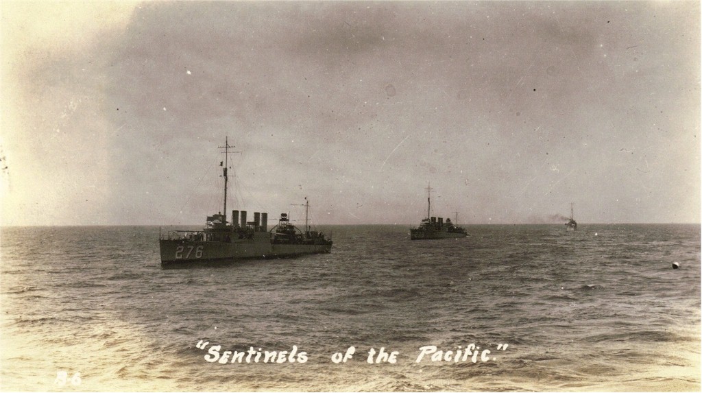 | 130k | USS Henshaw (DD-278) At anchor with other destroyers, circa 1920. USS Parrott (DD-218) is at left, to the right of Henshaw appears to be USS Arron Ward (DD 132). Photo form the collection of the Vallejo Naval and Historical Museum. | Fred Weiss/Darryl Baker |