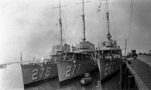 121k | USS Sinclair (DD-275), USS Moody (DD-277), USS Henshaw (DD-278), USS Meyer (DD-279) and USS Doyen (DD-280) circa 1920, location unknown. | Ric Hedman |