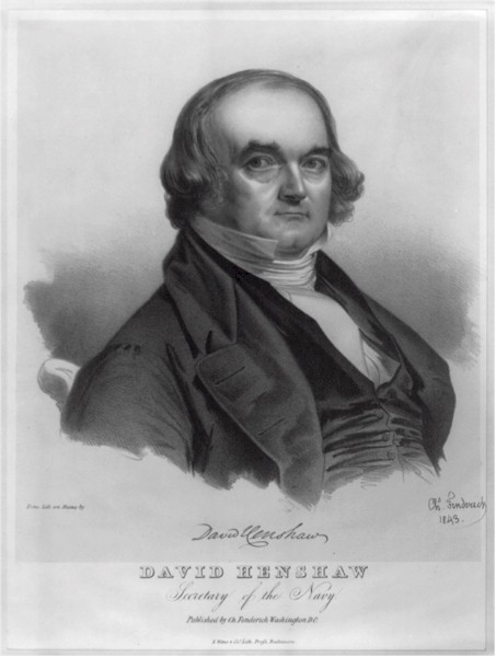 | 47k | David Henshaw was born in Leicester, Massachusetts, on 2 April 1791. Trained as a druggist, he achieved notable success in that field, then expanded his energies into banking, transportation and politics. He was elected to the Massachusetts Senate in 1826 and served as Collector of the Port of Boston from the late 1820s until 1838. Though he suffered business reverses during the later 1830s, Henshaw regained his political position as a leader of the Massachusetts Democratic Party within a few years. In July 1843, President John Tyler selected David Henshaw to succeed Abel P. Upshur as Secretary of the Navy. During his brief term in office, he addressed shipbuilding problems, selected senior officers for important seagoing commands, revised supply arrangements in the Navy Yards and attempted to establish a school for Midshipmen. His recess appointment as Secretary failed to receive Congressional confirmation, requiring that he leave office when Thomas W. Gilmer was confirmed to succeed him. David Henshaw then returned to Massachusetts politics. He died on 11 November 1852. Digital ID: cph 3b06290, Library of Congress Prints and Photographs Division. | Bill Gonyo |