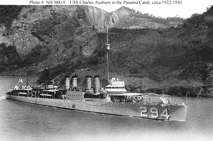 | 135k | Photo #: NH 98819 USS Charles Ausburn (DD-294) Transiting the Panama Canal, circa 1922-1930. U.S. Naval Historical Center Photograph. | Fred Weiss |