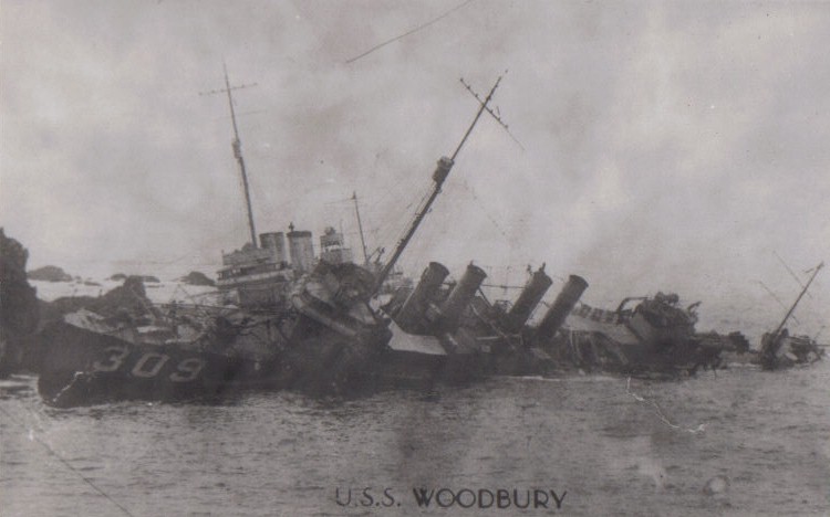 | 117k | USS Chauncey (DD-296) in the foreground, with USS Young (DD-312) capsized astern. USS Woodbury (DD-309) in the centre distance, with USS Fuller (DD-297) faintly visible behind her. Note the people on the rocky point at right. photographed by Aston. Donation of Captain George M. Grening, USN (Retired) Photo No NH 84822. | Robert Hurst |